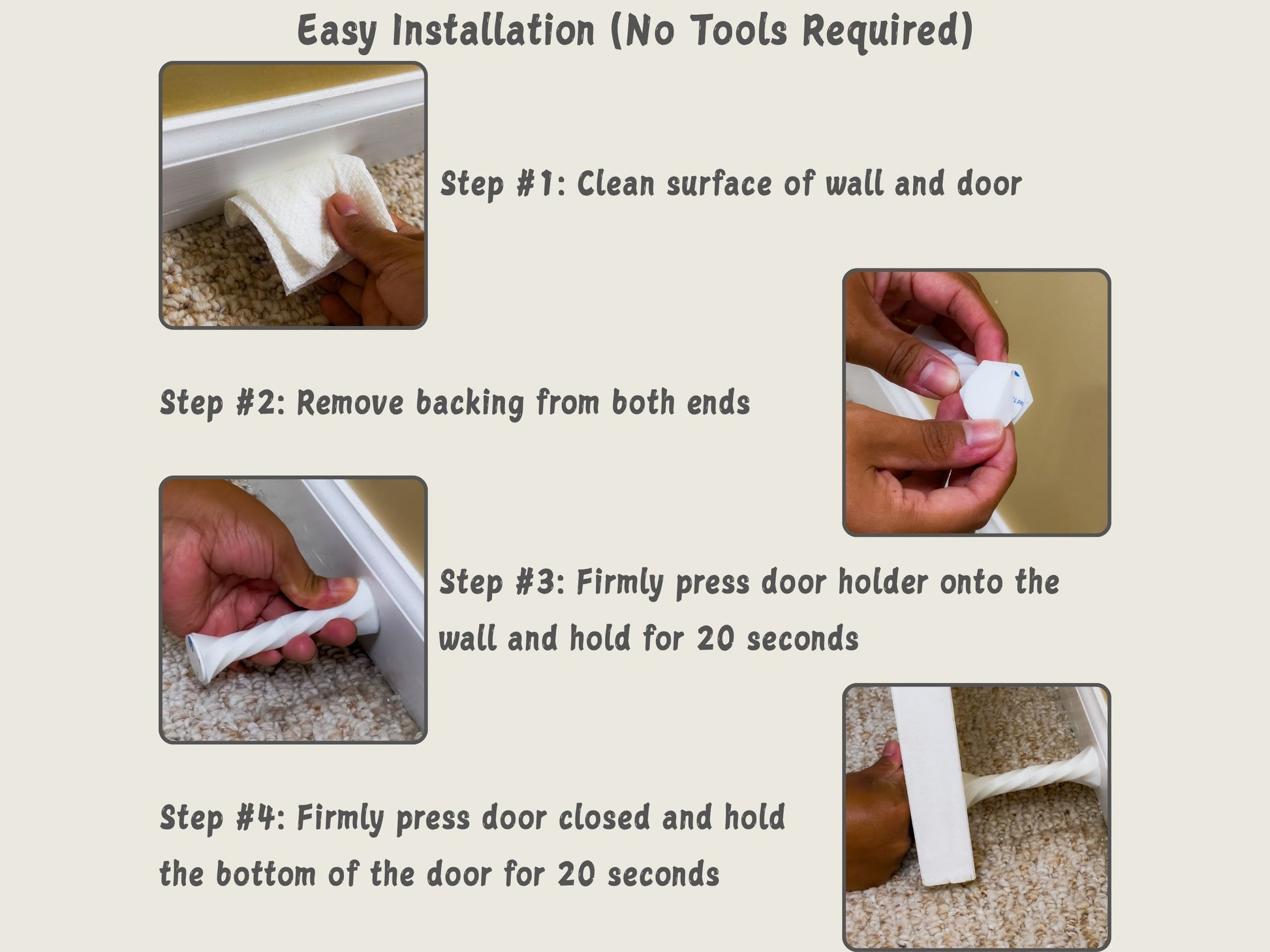 Installation is quick and tool-free using the included adhesive foam pads;. simply peel, stick, and press.