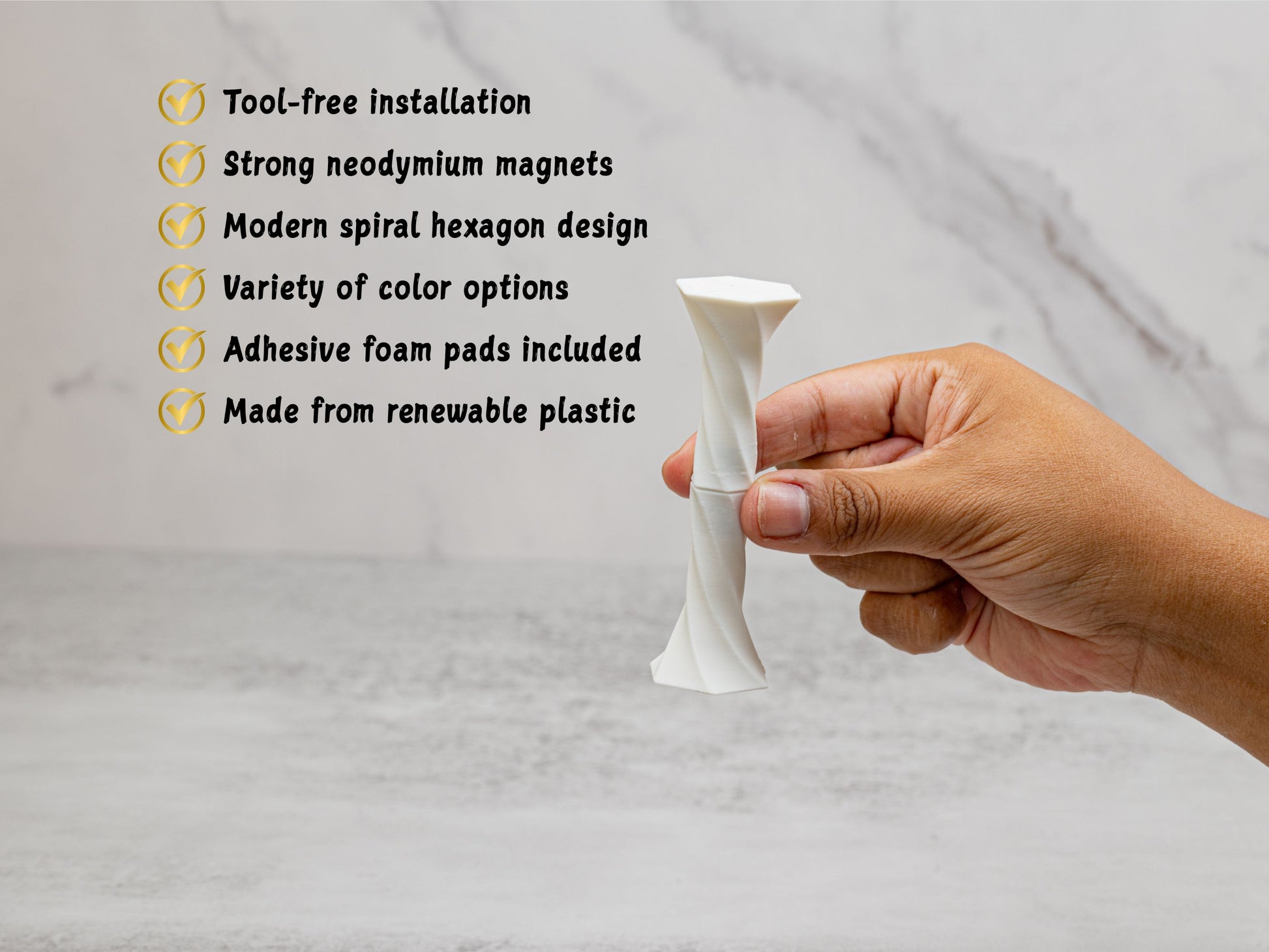 Add both function and style to your space with the Spiralized Hexagon Magnetic Door Holder. Its geometric spiral hexagon design gives a bold, modern edge while maintaining the elegance to complement any room.