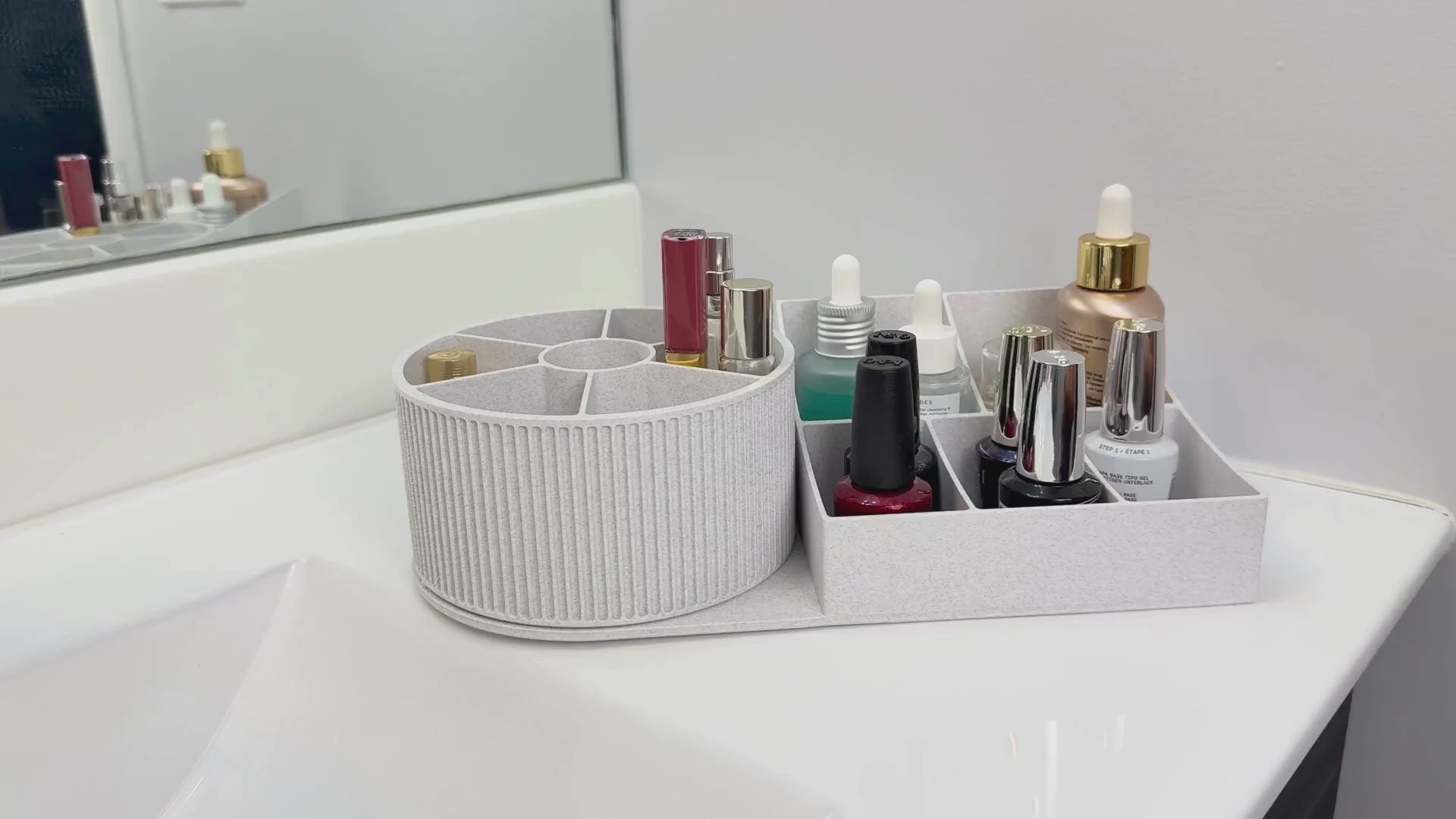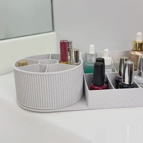 Crafted from durable plastic and available in a range of colors, this compact organizer fits beautifully on vanities, countertops, craft tables, desks, or nightstands. Its minimalist design and smooth rotation make it both practical and decorative; the perfect addition to any space.