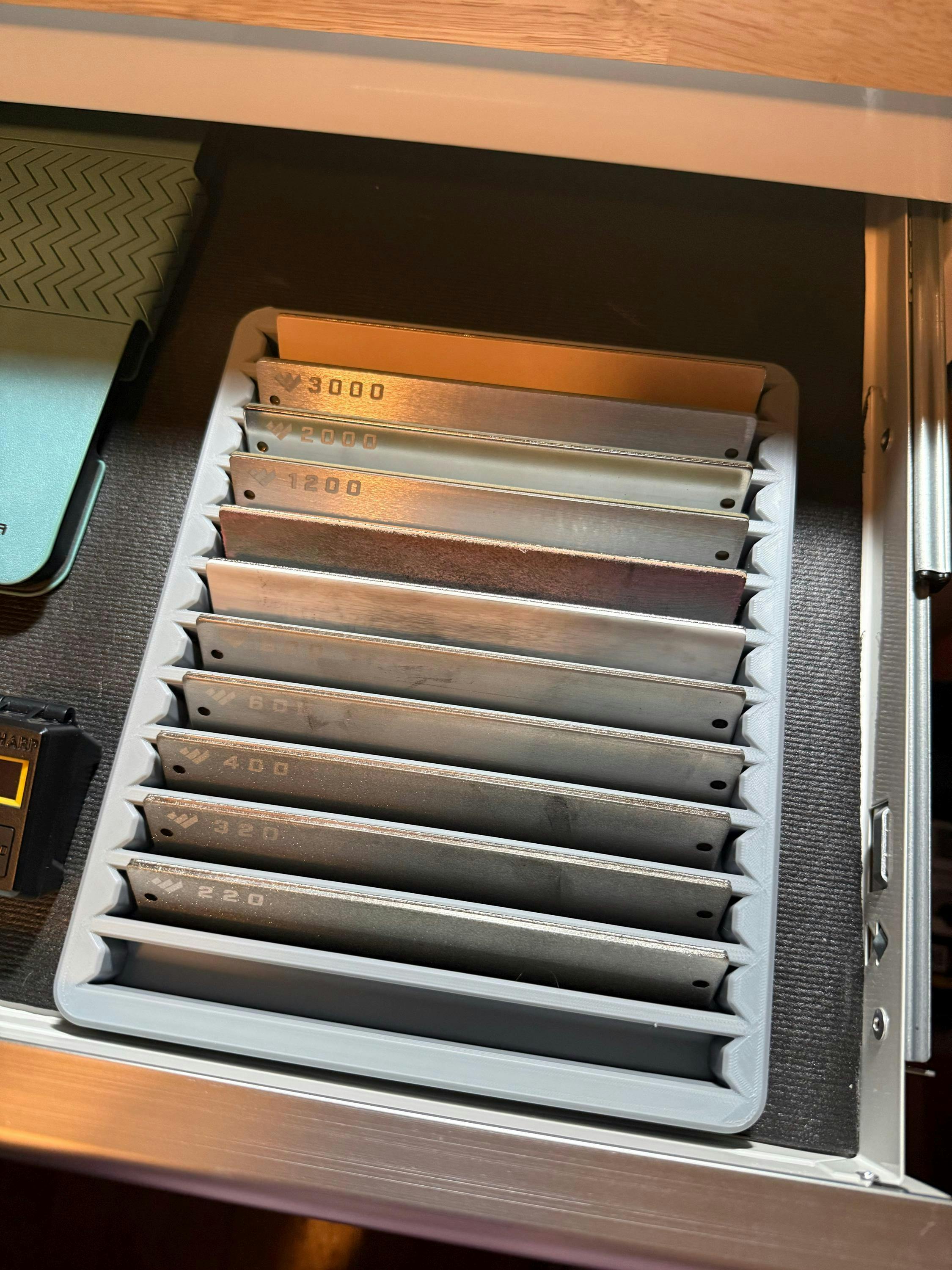 My husband is very happy with this purchase. He has been searching for the perfect organizer for his sharpening stones. Highly recommend!
